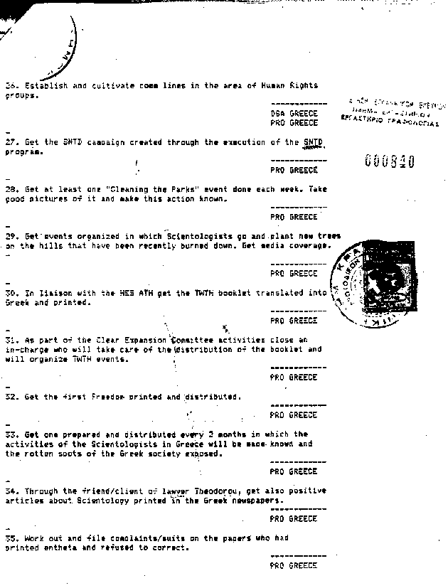 "Get one prepared and distributed every 3 months in which the activities of the Scientologists in Greece will be made known and the rotten spots of the Greek society exposed."