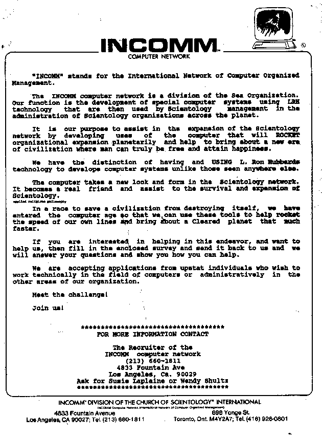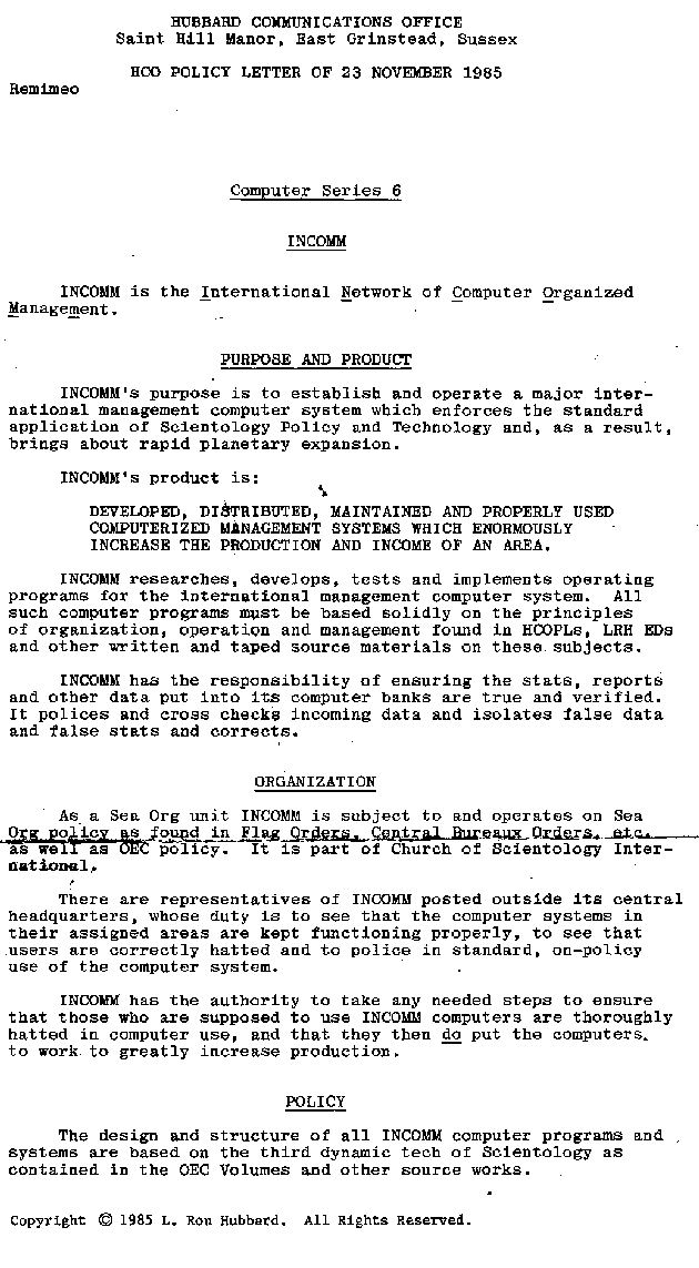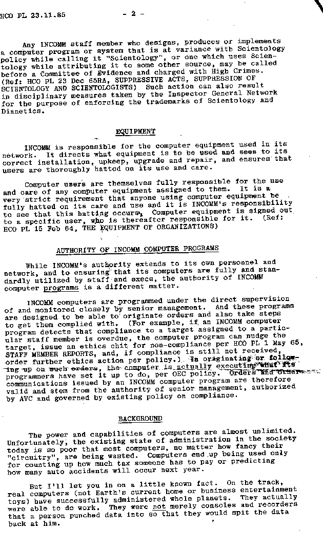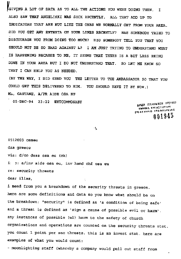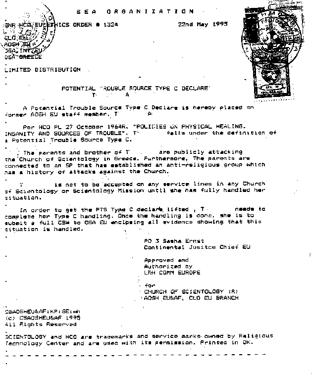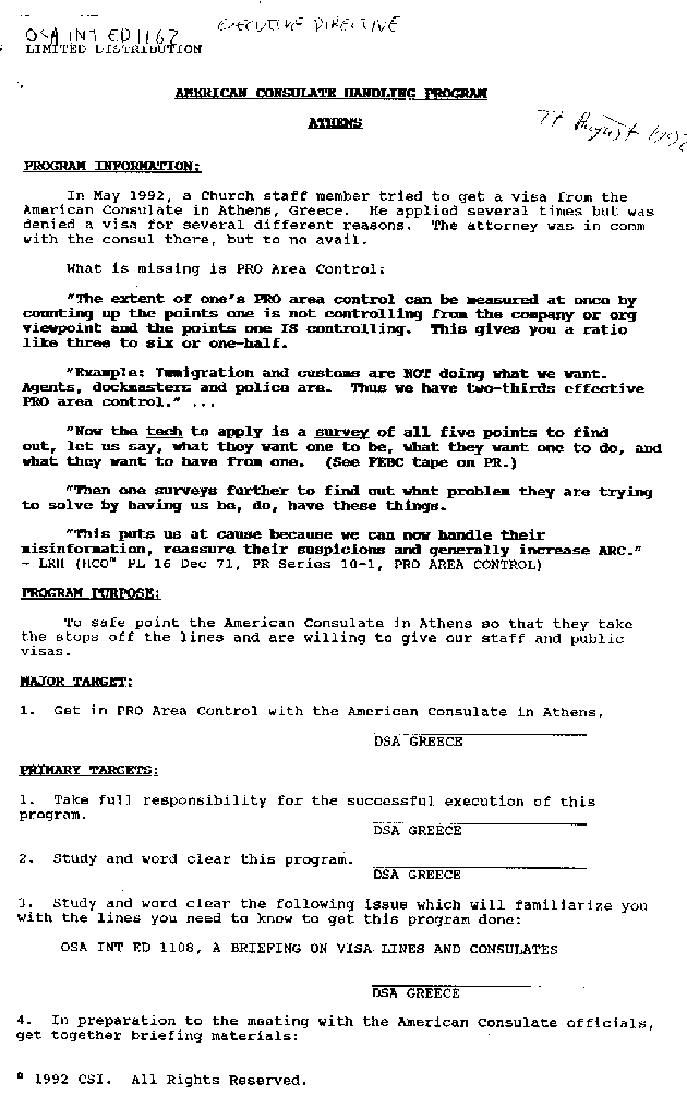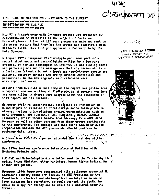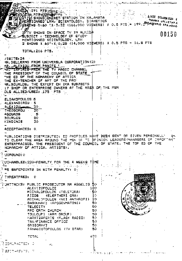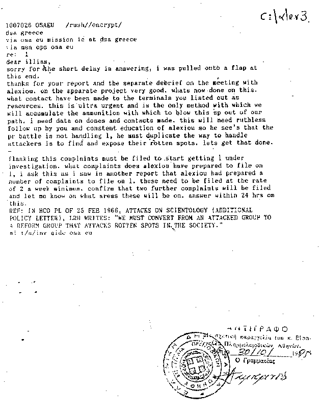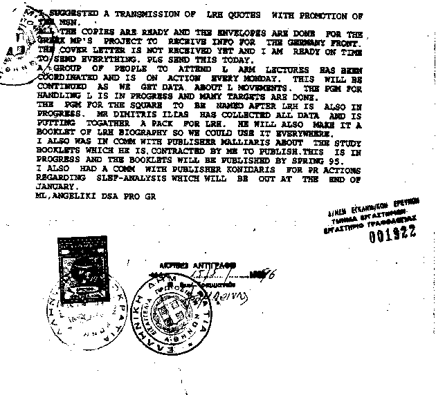 The presentation of original documents (from Scientology or related to Scientology) serves one main purpose: Inform on the true face of Scientology and of KEPHE (the Scientology organization in Greece), with the use of original documents beyond any doubt on their authenticity. THE DOCUMENTS ARE SCANNED IMAGES OF ORIGINALS, they are not ASCII text from a word processor.