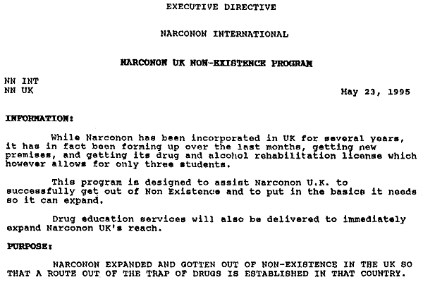 Narconon UK Non-Existence Program, 23 May 1995